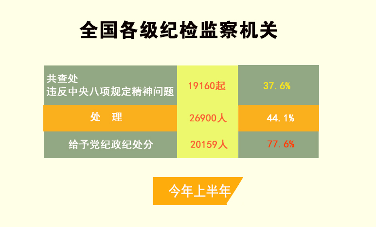 点击图片观看视频 中央纪委党风政风监督室日前公布了今年上半年的纠“四风”数据,全国各级纪检监察机关共查处违反中央八项规定精神问题19160起、处理26900人、给予党纪政纪处分20159人。与去年同期相比,这三项数据分别增长37.6%、44.1%、77.6%。中央纪委先后4次对19起典型问题进行了通报曝光,涉及中管干部5人。 从全国查处的违反中央八项规定精神问题看,存量和增量都不少。据统计,今年上半年查处问题中,违纪行为发生在2013年的占38.8%,发生在2014年的占15.9%,发生在2015年的占25.9%,发生在2016年的占19.3%;其中2015年以后的占45.2%。这一方面说明纪检监察机关执纪监督力度不断加大、越往后执纪越严,另一方面说明顶风违纪仍然突出。 高压之下,“四风”的公开表现少了,但改头换面,又出现了一些新动向新表现,呈现出隐形变异趋势。比如:违规公款吃喝转入内部食堂、农家乐;公款旅游假借党团妇联工会活动、出差培训等名义;大办婚丧喜庆采取化整为零、异地操办或由他人出面操办;收送礼金通过电子礼品卡、电子红包等新技术手段等。 在坚持中深化,在深化中坚持,每年要有新招数,不断释放新信号。对不收手、不知止,规避组织监督,参加隐秘聚会等隐形变异“四风”问题深挖细查。对被立案审查的干部,违反中央八项规定精神问题绝不放过,对一同参与吃喝的其他党员干部,一律进行约谈,参加者本人要在组织生活会上讲一讲,红红脸、出出汗,严重的坚决处理。要发扬“滴水穿石”的韧劲,踏石留印、抓铁有痕,持续发力加压,推动中央八项规定精神落地生根。(撰稿:石洪涛 李鹃 编导:邸智泉 摄像:齐学家 包装:尹雪诺 配音:张东岳)